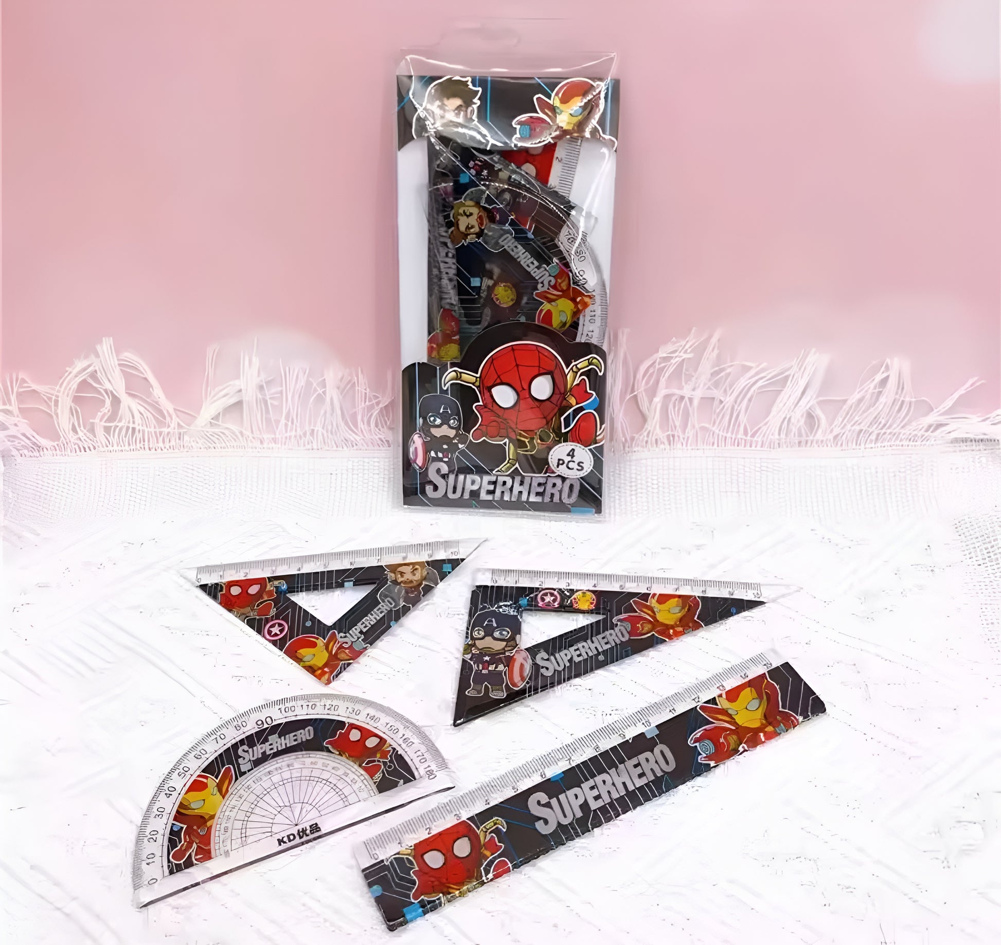 Make learning fun and exciting with our Cartoon-Themed 4-Piece Geometry Ruler Set, specially designed for students who love their favorite animated characters! Each set includes all essential math tools — a straight ruler, two triangle rulers, and a protractor — all decorated with colorful and high-quality character prints.