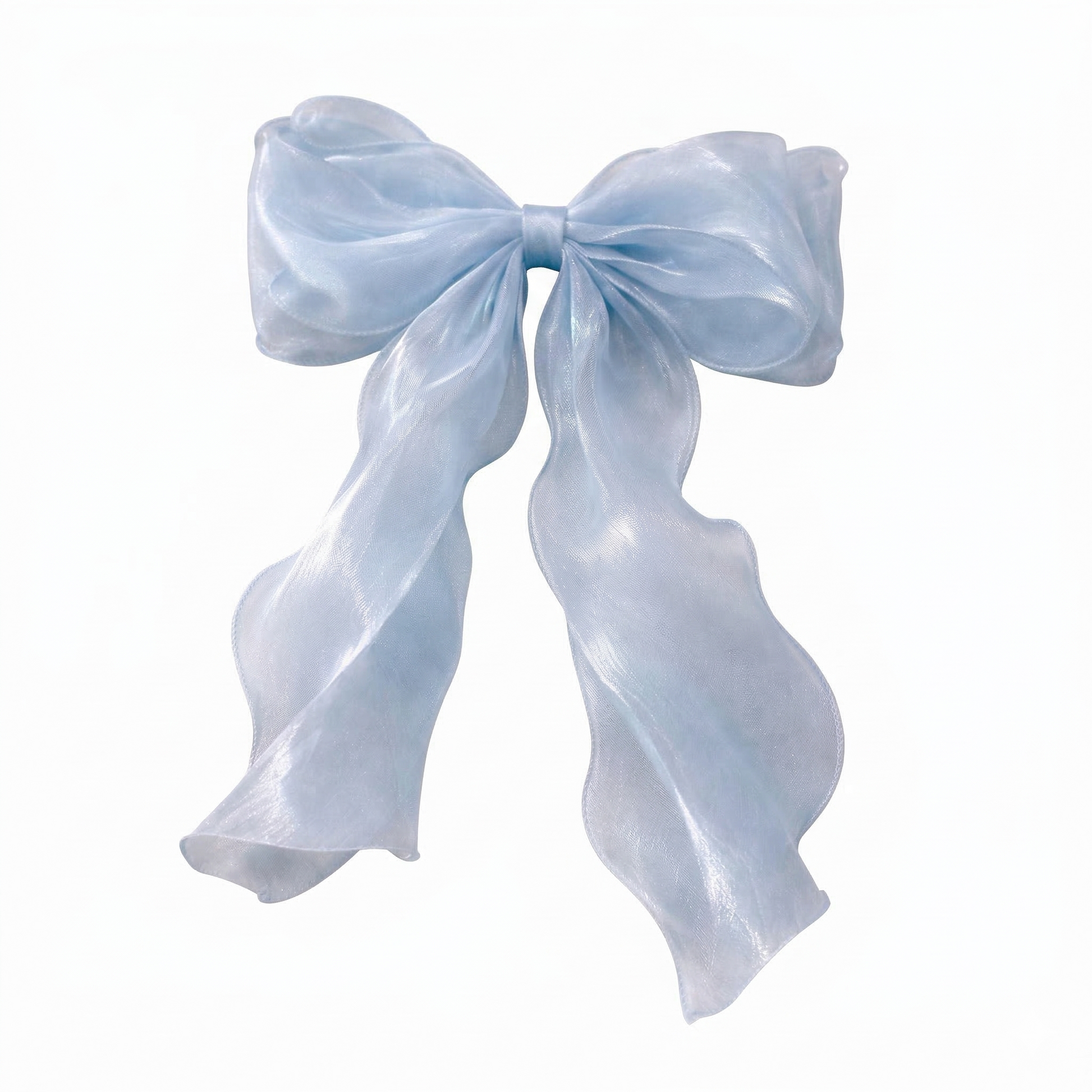 Elevate your hairstyle with this enchanting oversized hair bow, crafted from premium shimmering organza. Its lightweight, translucent fabric catches the light beautifully, adding a soft, romantic touch to any look. Whether you're dressing up for a special occasion or adding a whimsical flair to your daily outfit, this statement accessory offers a perfect blend of elegance and charm.