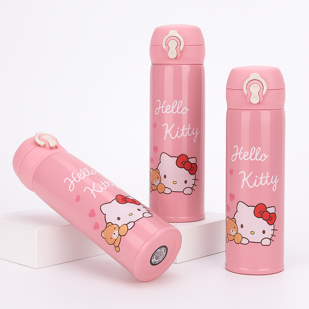 The Hello Kitty Thermos is a stylish and practical companion for keeping your beverages at the perfect temperature throughout the day. Designed with a charming Hello Kitty print, this 500 mL insulated bottle maintains drinks hot or cold for hours, making it ideal for school, work, or travel. Its durable, high-quality construction ensures long-lasting use, while the secure, leak-proof lid offers peace of mind on the go. Stay hydrated in style with this delightful thermos.